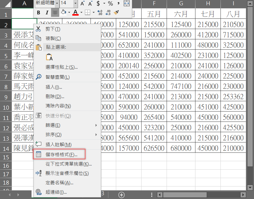 點選到要處理的那格,按右鍵 → 儲存格格式。