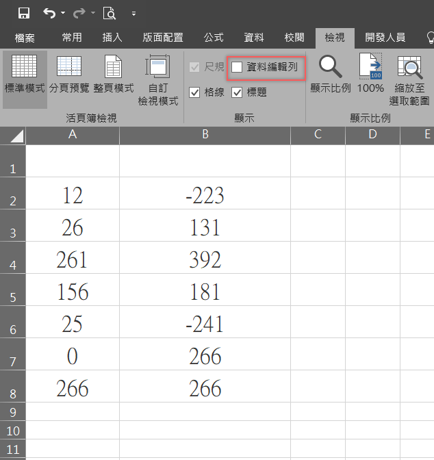 如何隱藏資料編輯列?