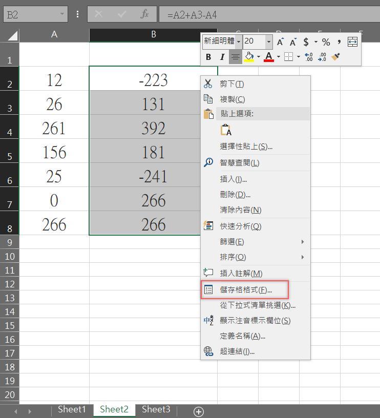 選取要隱藏的儲存格,一格或一次選多格都 OK,按右鍵 → 儲存格格式。