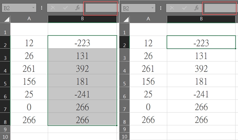 完成,剛剛選取的部分都看不到公式了,不管是一格還是全部都只能以空白顯示。