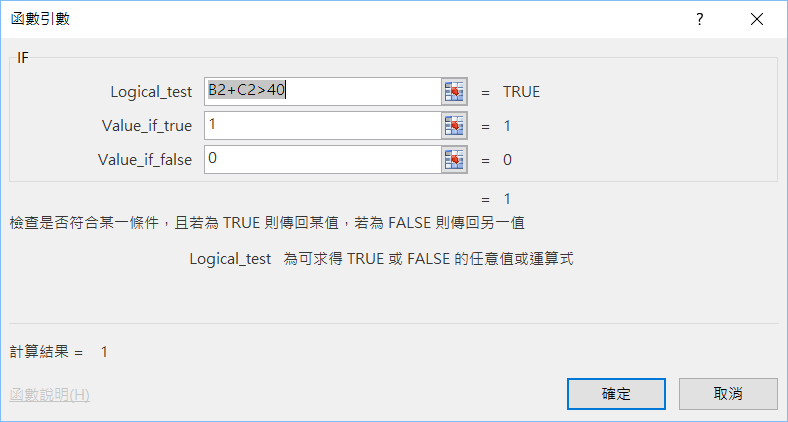 如果再加上左括號「(」變成「=if(」,就會帶出整條提示,不用再另外開啟視窗,這時候如果再用滑鼠點擊開頭的 IF,會連結到函數的詳細說明。
