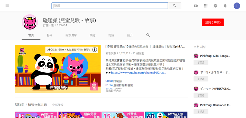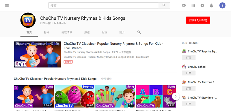 以兒歌聞名的幼教品牌,除了中文還有英、日、韓等不同語言的頻道連結,以這個中文版來說雖然顯示來自台灣,但阿湯看了好幾部發現有的影片有點太字正腔圓,也有參雜簡體字,爸媽們要注意一下,除此之外內容真的很豐富,畫面活潑、雙語歌曲類也不錯。