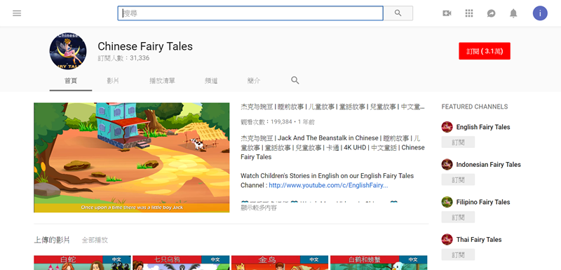 這個頻道阿湯考慮很久才決定介紹,因為是中國製的所以是簡體字、大陸腔調,怕小孩亂學的家長一定要在旁邊一起解說,不過有不少影片類型是其他頻道沒有的,像是中國傳統的民間故事、成語故事,還有其他國家的經典童話,以及不同年齡層的專區,讓孩子知道一些屬於華人國家的經典名著,也擴大了學習範圍。