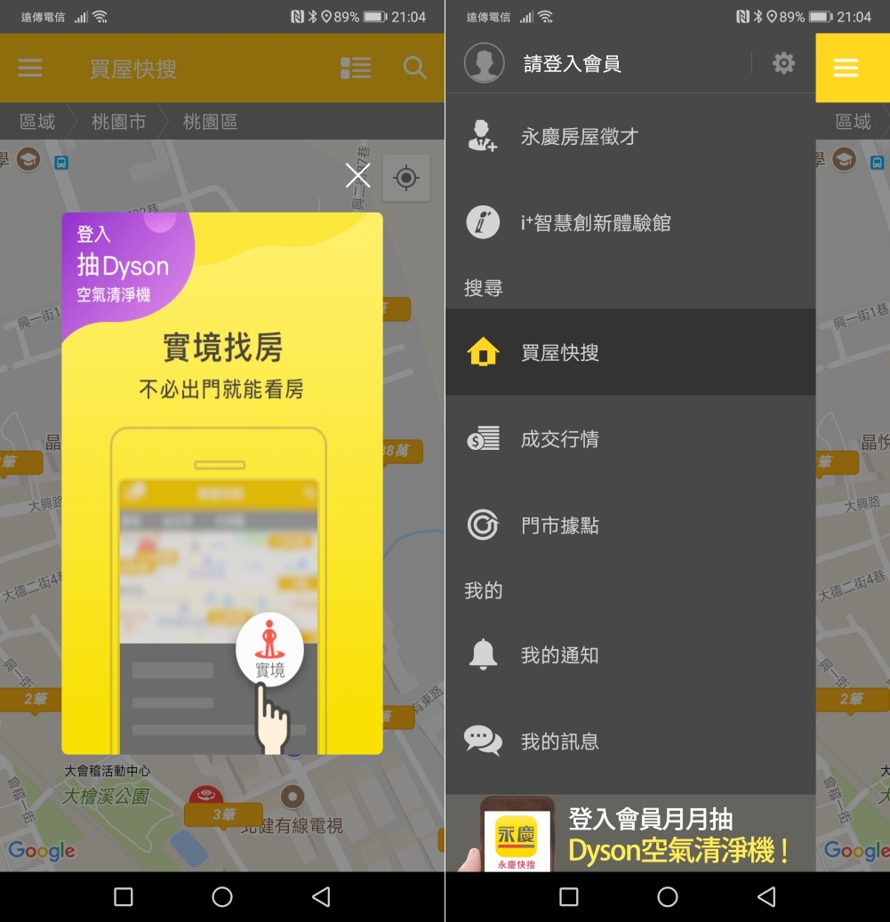 相當重點的功能來啦,就是這「實境找房」,可以依據屋內每個空間觀看環景照片,快速透過 APP 就能先看過室內環境,其實光這個照片看完就會決定你想不想出門去看現場,這功能真的幫了我不少忙,可以少走很多路、少曬很多太陽啊。