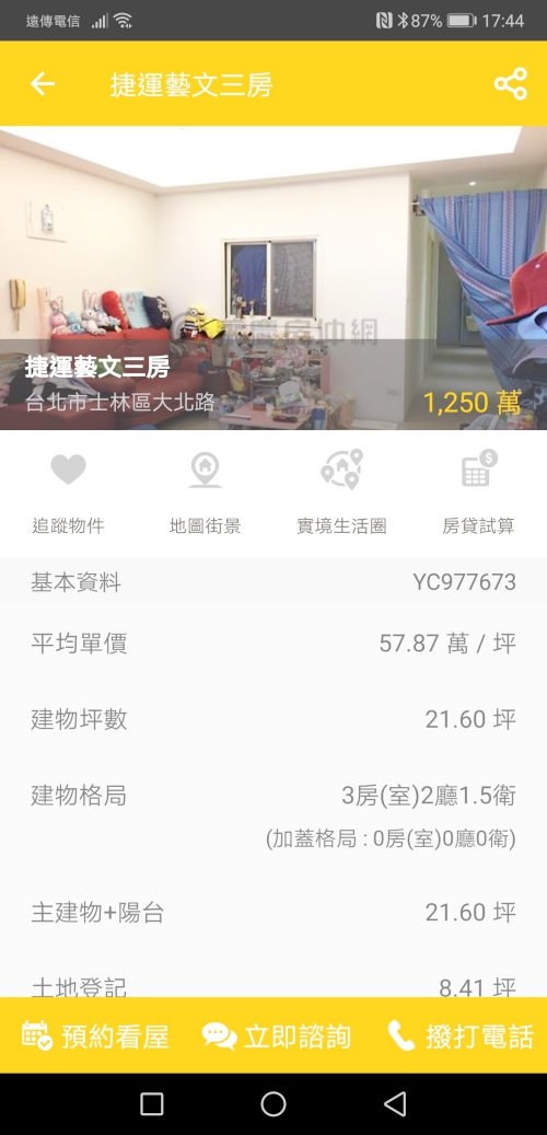 如果是永慶直營店的房屋,在下方還可以看到會有一個「立即諮詢」的功能,簡單的說就是可以線上直接和經紀人文字對談,而且是針對該房屋負責的經紀人接洽,所以絕對不會一問三不知,往下來看。
