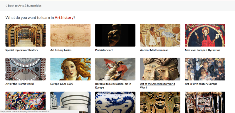 來看位於藝術與人文底下的藝術史,這裡用縮圖和小標題顯示不同類別的特色,點圖片進入。