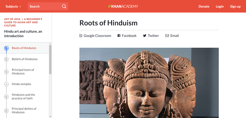 阿湯是從基礎的印度教藝術文化開始讀,左邊的時間軸除了分辨查看分節內容外,還可直接點擊跳過去看,並分為文字內容(類似於教學講義)及影片,光是這章就有 13 小節,內容相當詳盡。