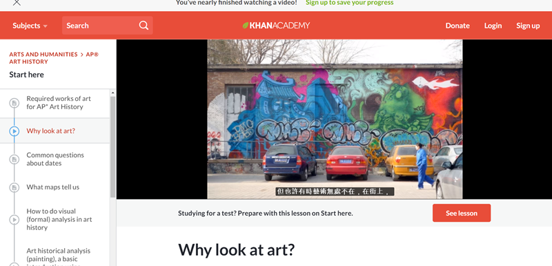 以亞洲藝術為例,共 241 個主題,每個主題底下又分好幾章,可從基礎知識入手或直接跳到想看的章節,還有測驗部分可讓你驗收學習成果。