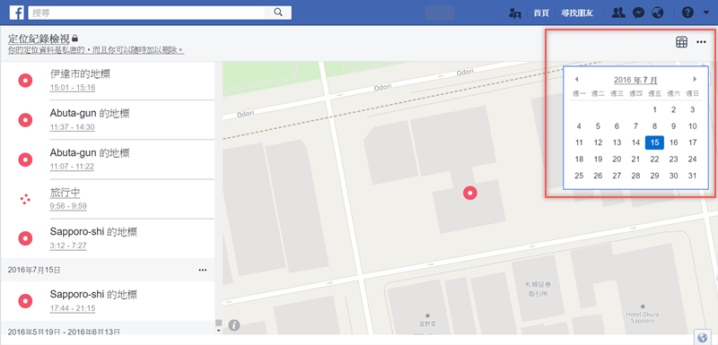 打開右上角的日曆圖示,可以選擇你要查看哪年哪月哪天的紀錄,還蠻恐怖的,原來 FB 偷偷跟了那麼久。