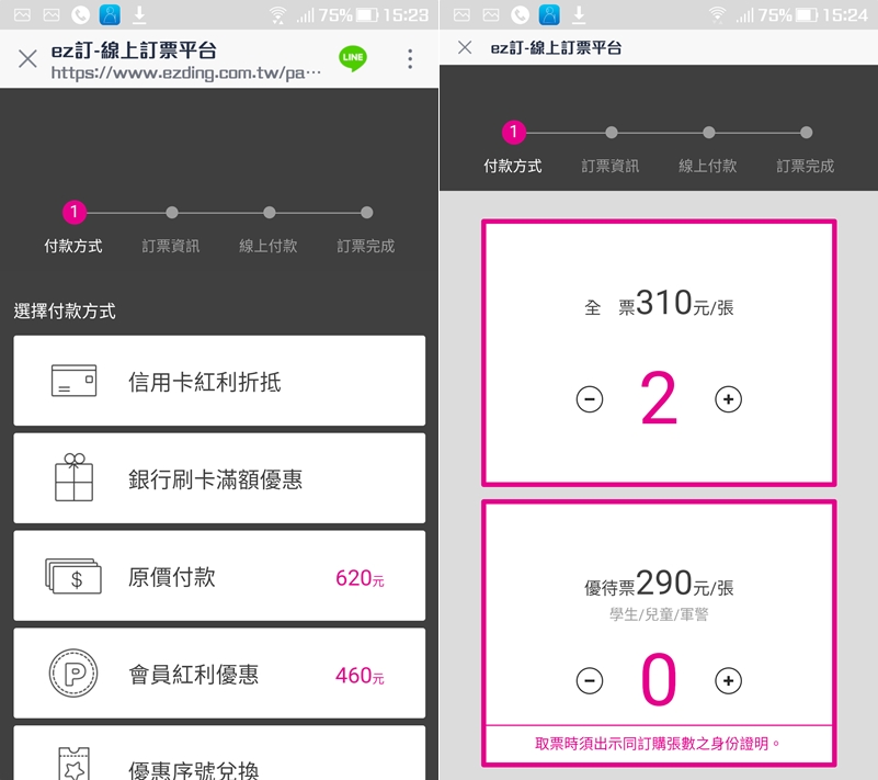 選擇付費方式,非會員也沒有任何紅利優惠的話就按原價付款,確認張數。