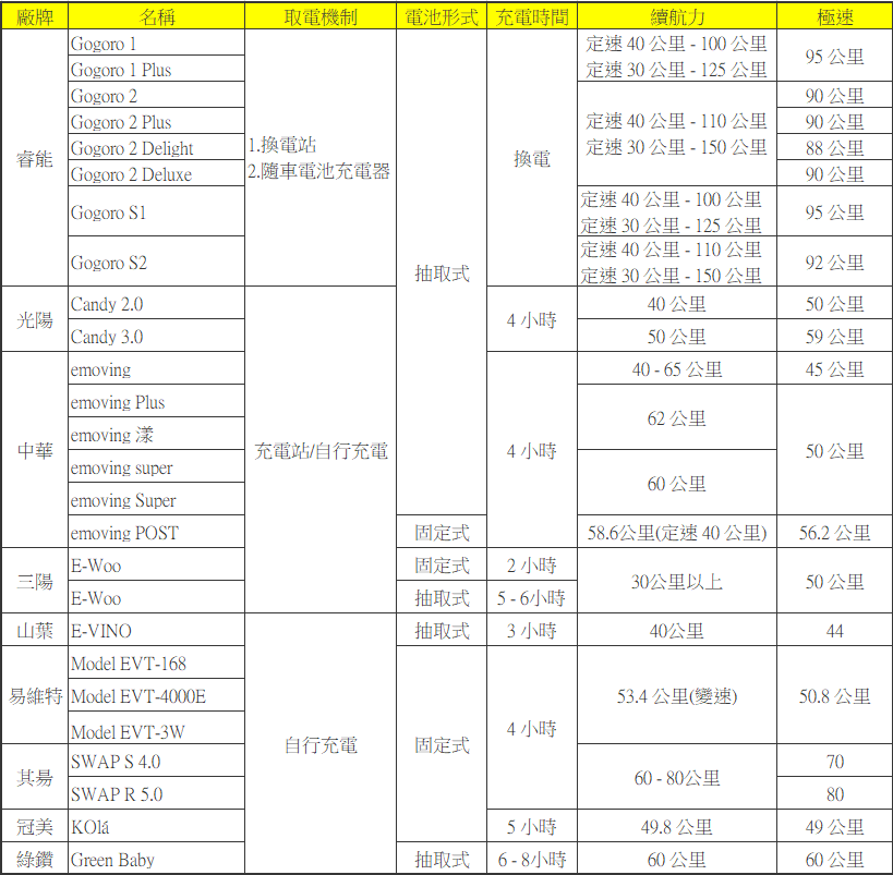 在提倡環保的時代電動車是不錯的選擇,可以減少空氣及噪音汙染,樣式也推陳出新,台灣近年來有不少車商陸續跟進,加上政府推動的相關補助方案,大家應該會發現馬路上的電動車越來越多,尤其住北部的朋友應該更有感,不過一般人沒特別研究的話可能只知道 Gogoro,或者像一些長輩(五六十歲以上)可能會認為電動車是那種超慢的買菜車,這篇阿湯就以政府「電動機車產業網」為準,列出各家廠牌推出的車款、規格、電池模式等,最後再附上表格比較,大家也可連到官網查看詳細資訊,希望對想買車、換車的朋友有所幫助。