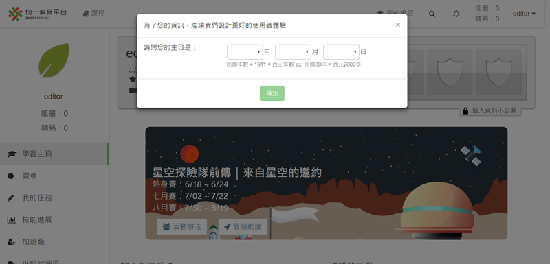 進入畫面後要輸入一下生日供系統設計更好的使用者體驗,阿湯猶豫了一下,還是先用真實生日看看。