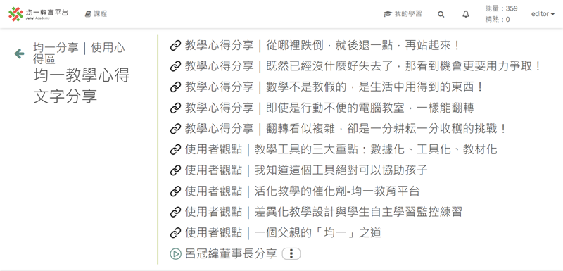其他像教師專區裡的心得分享或加入社群,對老師們應該很有助益,閱讀之後阿湯也學到不少,不論是什麼身分,都是要不斷學習與成長啊。