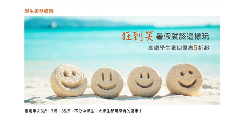 高鐵蠻早就釋出了優惠訊息,提供五折、七折、八五折的票價,12 歲以上國內各級學校包括夜間部、在職專班、新生都可享有,適用於標準車廂對號座,線上訂票或現場購票時記得選取「大學生」,乘車時需攜帶證件查驗,其他注意事項請點上面的連結進入查看哦。