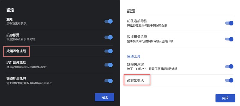 除了各項相關設定,像是接收快訊、保持配對等,還有深色主體可套用,或是開啟高對比模式,阿湯覺得還蠻適合給長輩用的,不用拿著手機慢慢輸入又怕出錯,常需要發簡訊的朋友也可以用這個系統發送,很方便。