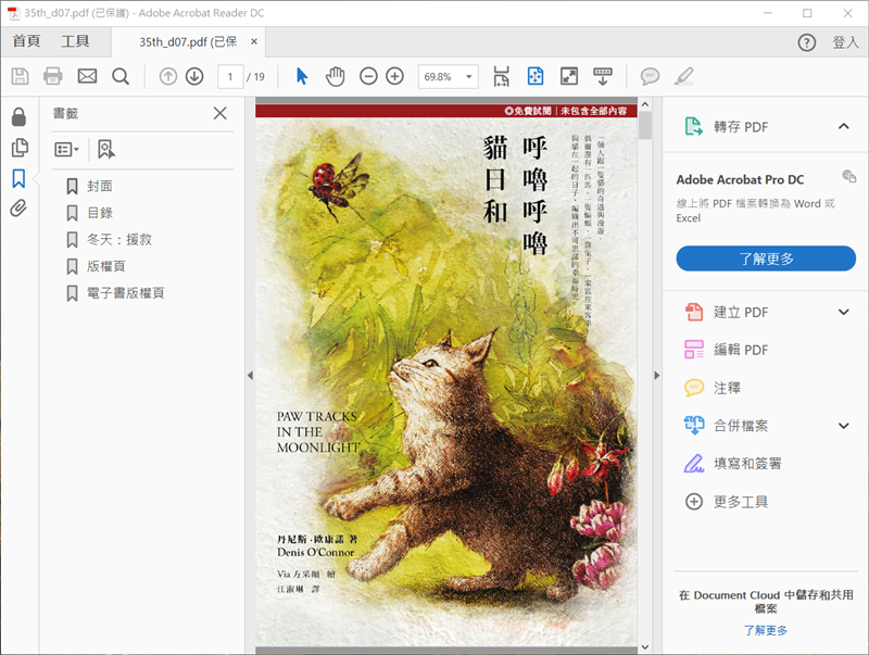下載後就可以看得更清楚,或是加入自己的註解等其他編輯,雖然是免費試閱版本,但頁數也不會太少,家長或老師們可以先看一下內容細節再決定購買,像這本外國小說從營救貓咪的過程說起,蠻有意思的,阿湯覺得比較適合國中生閱讀。