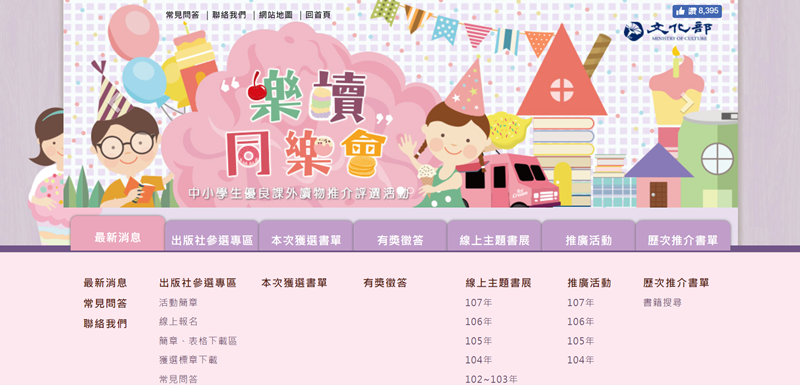 從首頁可連結到評選官網,除了有出版社參選的資訊外,最重要的是線上主題書展的部分。