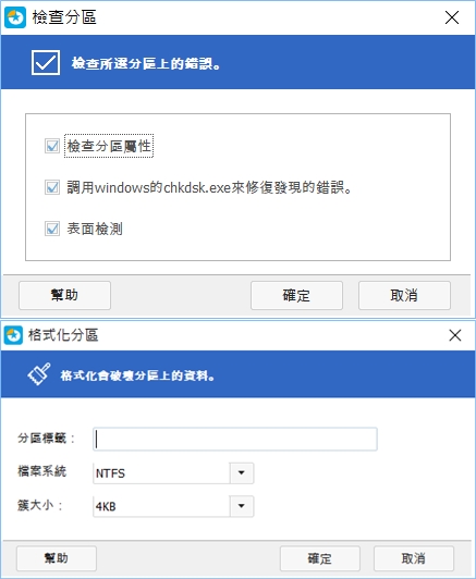 除了檢查分區屬性及錯誤,也能格式化(小心使用啊)。