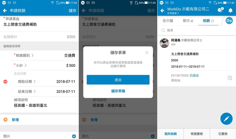 跟請假單使用方式差不多,輸入事由、日期、金額等再送出即可,整體來說用起來算順手,但可能是功能太多了,不熟的情況下會感到眼花撩亂,希望開發商再改善一下介面,數位化時代,紙本也該慢慢被取代,有需求的朋友快來用用看。