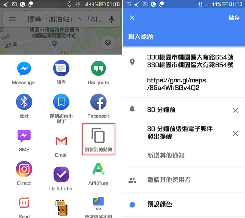 如果已經預先查過要去的地點,可以複製地圖的網址,再加入日曆編輯,貼上地點後自動一併附上地圖,對於習慣用 Google 行事曆的朋友很方便,這樣要找也比從其他地方(例如 Email)快很多。
