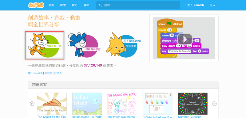 大家對所謂的「編程」(Coding)有多少認識呢?感覺好像很難很專業,但其實就跟阿湯部落格的很多文章一樣,接觸過了之後會覺得「還好」,最近阿湯在尋找中文版學習資源的時候發現「Scratch」這個網站,是 Google 和麻省理工學院媒體實驗室終身幼兒園團隊合作計劃,讓大家可以藉由簡單的步驟,加入各種動作、音效、形狀變化,自由編寫屬於你的互動媒體,像是故事、遊戲、動畫等,阿湯覺得蠻有趣的,往下看。