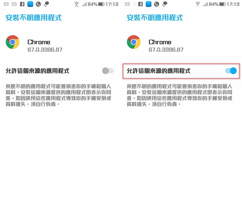「允許這個來源的應用程式」預設是關閉的,將它開啟即可。