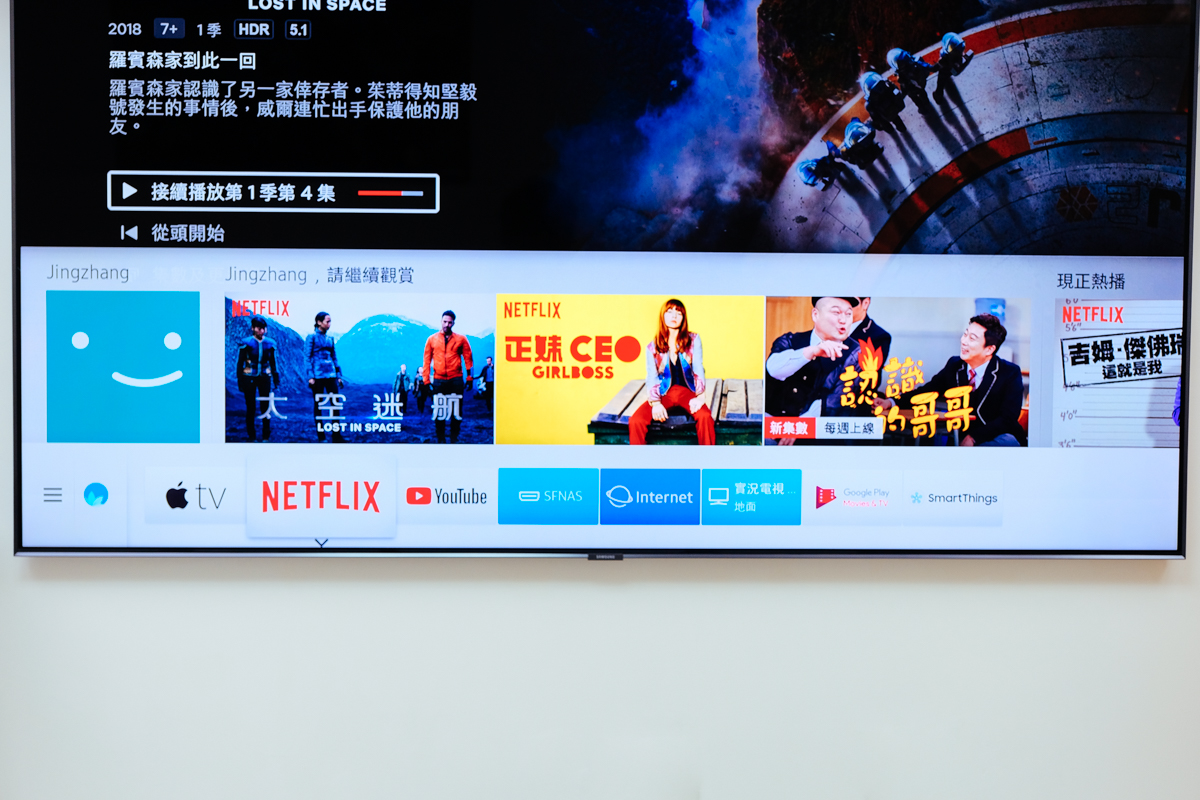 不過這裡要講一下,阿湯的 NETFLIX 沒有在 APPLE TV 裡使用原因很簡單,因為我買的 APPLE TV 版本是沒有支援 4K 解析度,所以我直接使用 Samsung QLED 量子電視內建的 APPs 來看 NETFLIX。