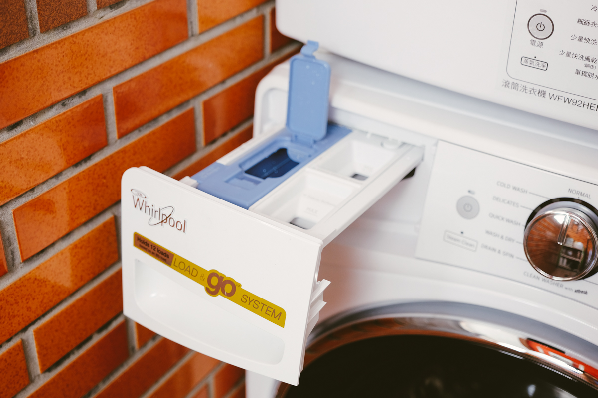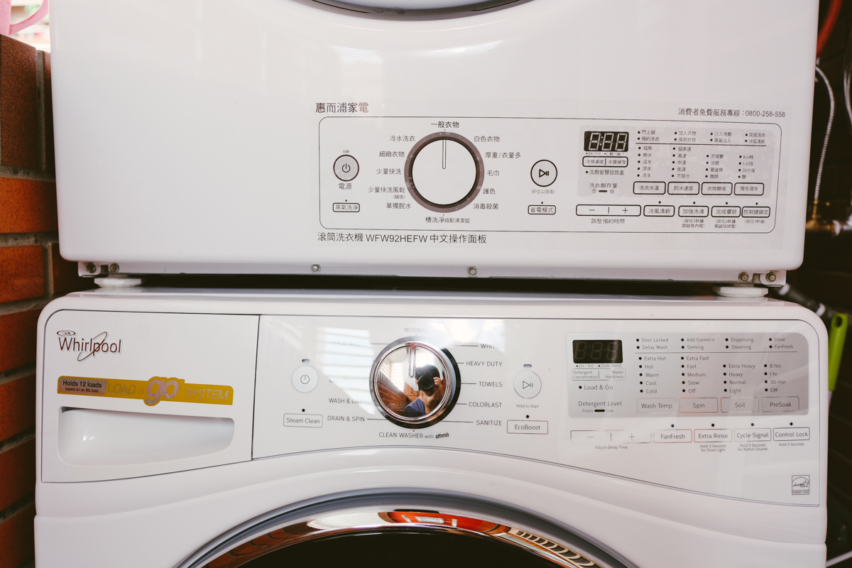 在用了直立式洗衣機加滾筒式乾衣機經過不知道多久之後,阿湯終於實現了把洗衣機也換成了滾筒洗衣機,就可以把洗衣機跟乾衣機疊在一起節省陽台不少空間超清爽,因為先前購買的乾衣機是惠而浦的 WGD75HEFW 瓦斯乾衣機,所以如果要疊在一起的話,當然還是買同一家的洗衣機比較好,因為大小相符外,看起來比較一致才好看啊!而阿湯這次更換的洗衣機型號就是這款 WFW92HEFW 極智滾筒洗衣機,也是目前惠而浦滾筒洗衣機中最頂級的一款,除了一般洗衣行程之外,還有熱水消毒殺菌、蒸氣深層洗淨、FanFresh 自動冷風清新、Load & Go 洗劑精算科技等各種你用的到的洗衣功能,往下阿湯就來和大家分享,順便也一併分享一下已經用了超過一年的乾衣機心得吧。