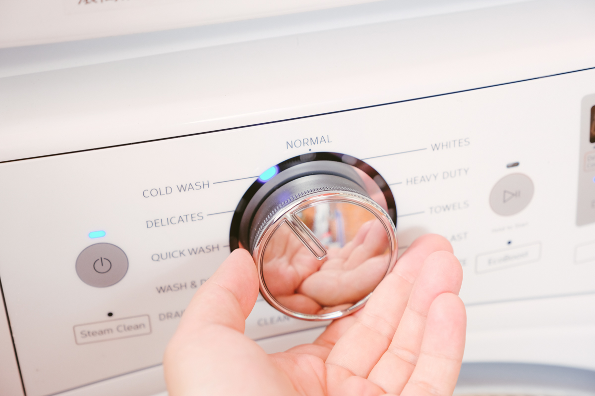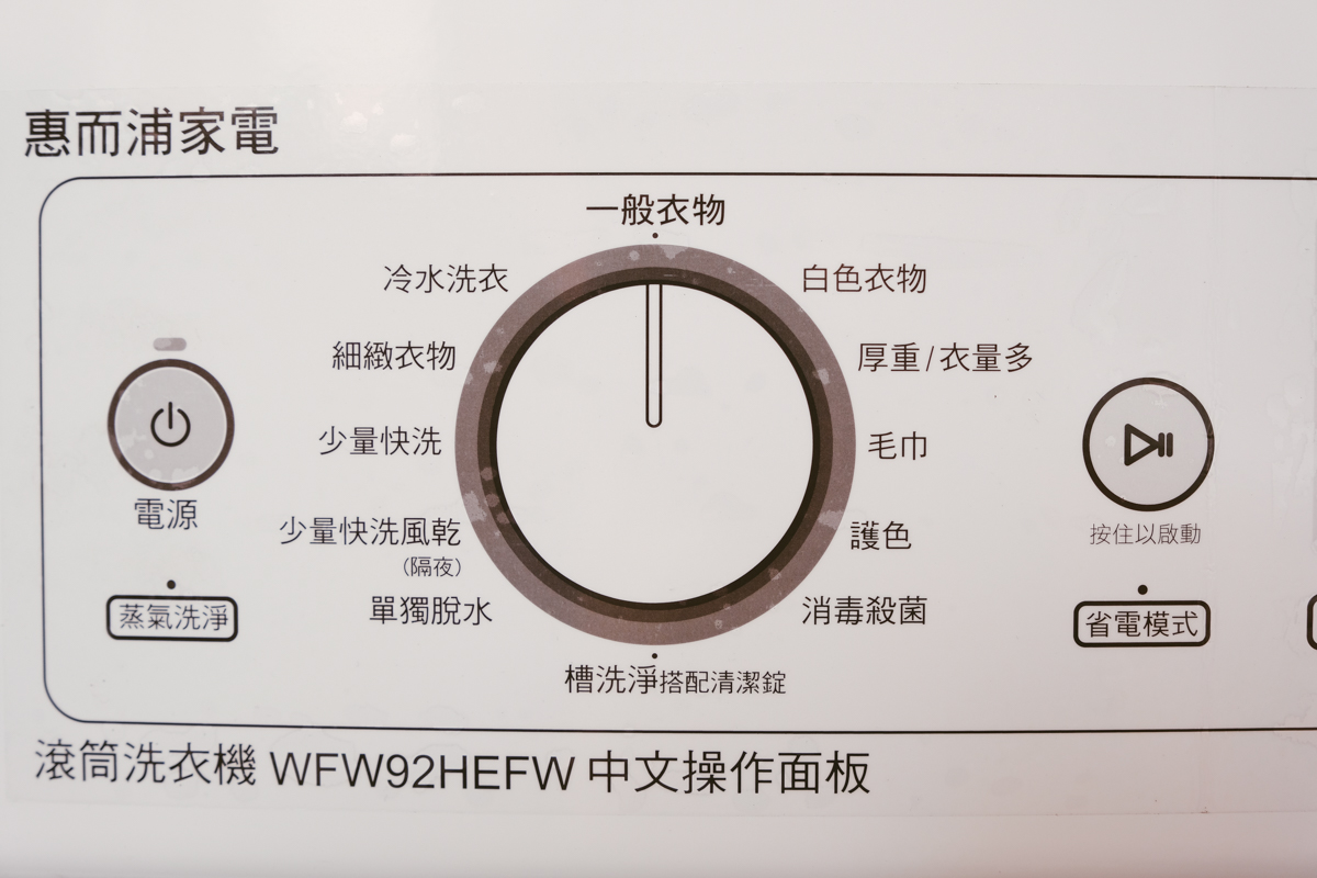 惠而浦的另一項設計我覺得很棒的是,當要洗衣服時,不一定要先按電源開關,只要轉動行程旋鈕,就會自動啟用,包括乾衣機也是有著同樣的操作設計。