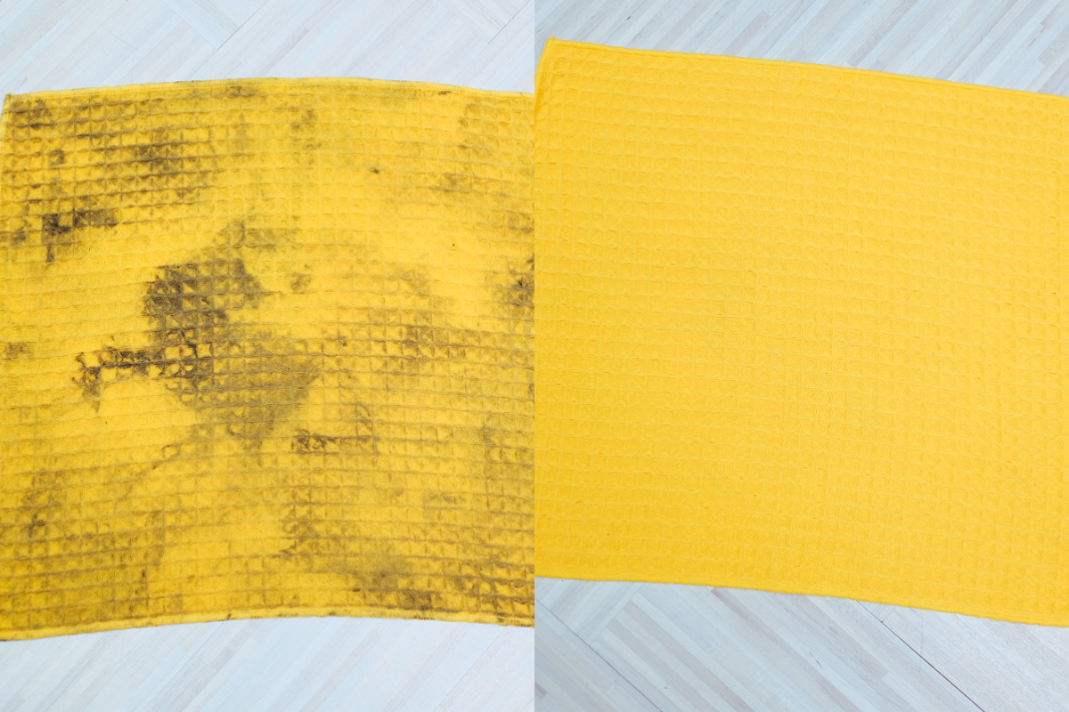而洗衣機的洗淨力嘛,完全不用擔心,阿湯就用了一塊用來擦拭舊洗衣機的抹布來測試,左邊是用完後二面都髒到一個不行,阿湯有先嘗試過用清水搓揉一下,完全洗不掉這些髒汙,再看看右圖,經過消毒殺菌行程後的清洗能力真的強啊,超乾淨的。