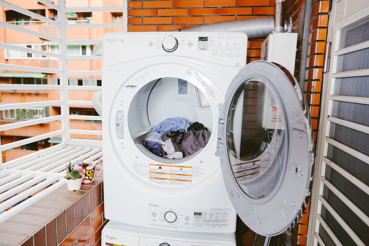 有人問我是滾筒洗的比較乾淨嗎?其實沒有太大關係,阿湯最主要是想堆疊洗衣機與乾衣機來節省空間,再加上原本二台是在陽台二端放置,每次洗完衣服要拿衣服到乾衣機那邊就頗麻煩,現在堆疊一起只要從下層拿到上層就可以了,方便超多(簡單的說就是我很懶...)。