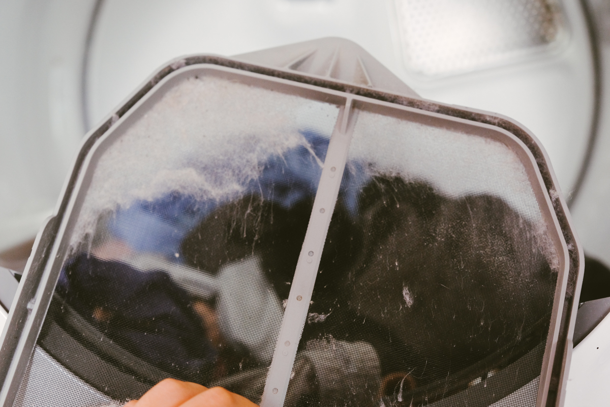 在乾衣機裡還有一層棉絮的濾網,建議每次使用前都順手清理一次,烘乾的效率會更好。
