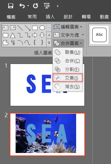 到合併圖案,選擇「交集」(更多合併圖案方式可參考