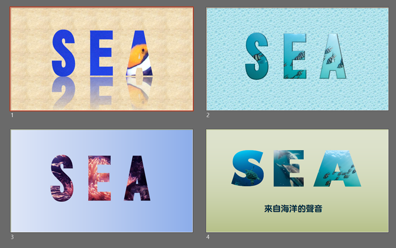 完成囉,第一張 S 是海龜圖、第二張 E 是海豚、第三張 A 是熱帶魚,真的是很豐富的 SEA 啊。