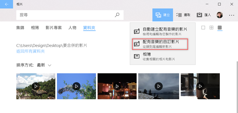確認內容無誤,按右上角建立 → 配有音樂的自訂影片,這可以讓你重新進行個人化編輯,如果不需要就選第一項自動建立。