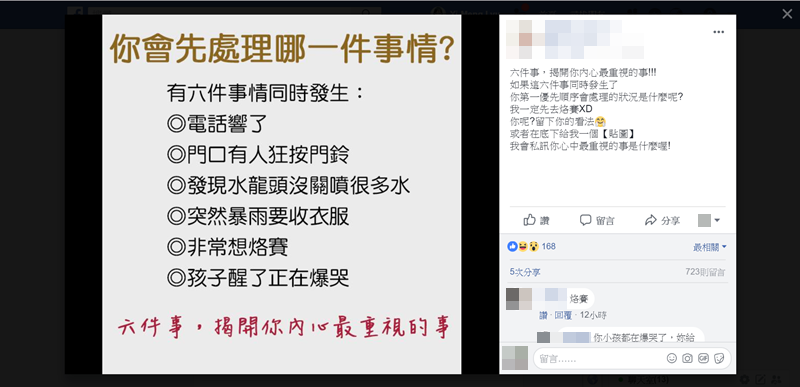 使用留言或私訊,心理測驗型有分純選項(ABCD),或是請大家回答項目內容的,這類型是最近幾個月最常見的,而且大家應該會發現會做心理測驗的就那幾個朋友,是有多少好奇心讓你一做再做幫人家衝人氣?這類通常都是一些沒什麼內容的粉專,或是購物型,回答後再給你網站連結請你點閱的。