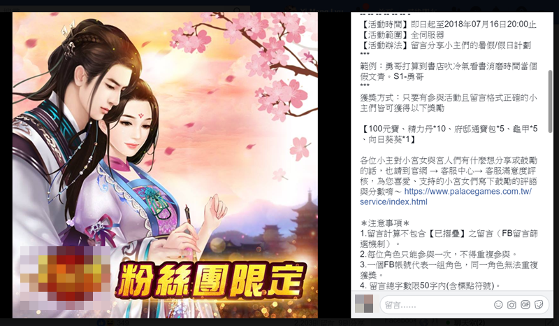 遊戲類粉專也常會靠這招送虛寶衝人氣,也是一種互動方式,通常還會有字數及其他限制,這樣小編在利用工具過濾的時候才會比較方便,阿湯就看過有人留言分享心得到欲罷不能,結果超過字數拿不到獎勵,再上網罵小編的…