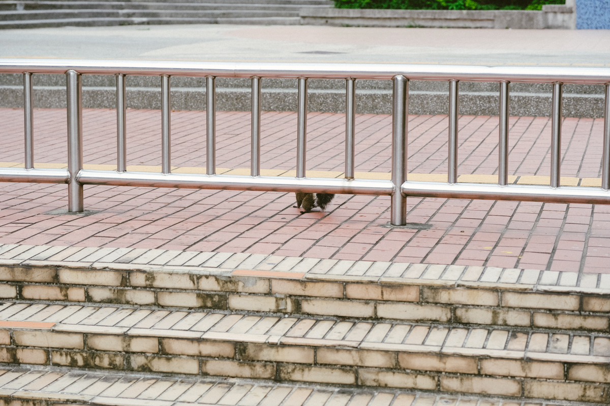阿湯一走進公園,目前就看到欄杆底下一團毛絨絨的不明物體,我就飛奔追上去了。
