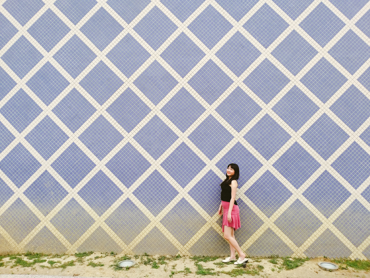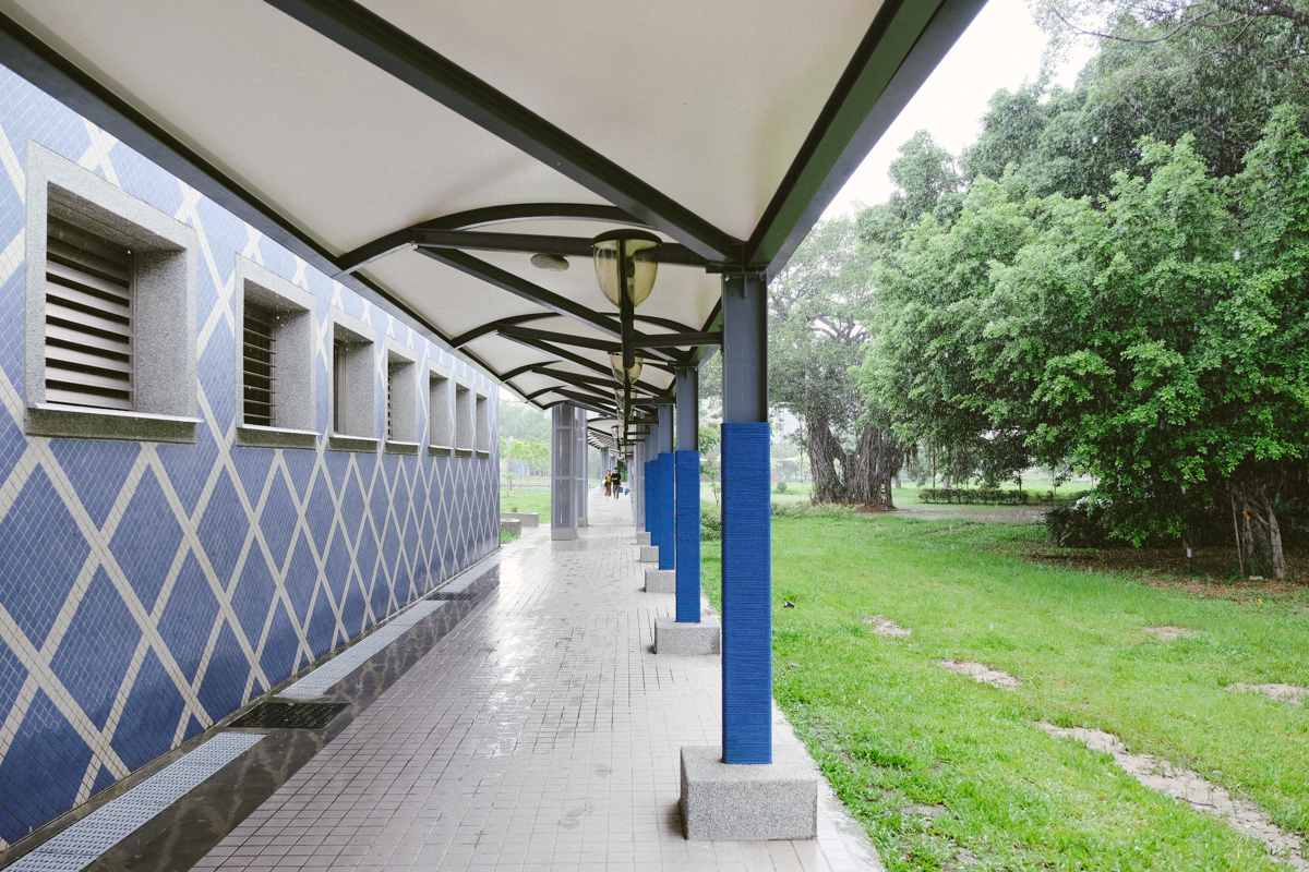 不過除了正門那面大牆之外,其實在運動中心的側面還有像這樣的長廊也非常適合拍照打卡哦。