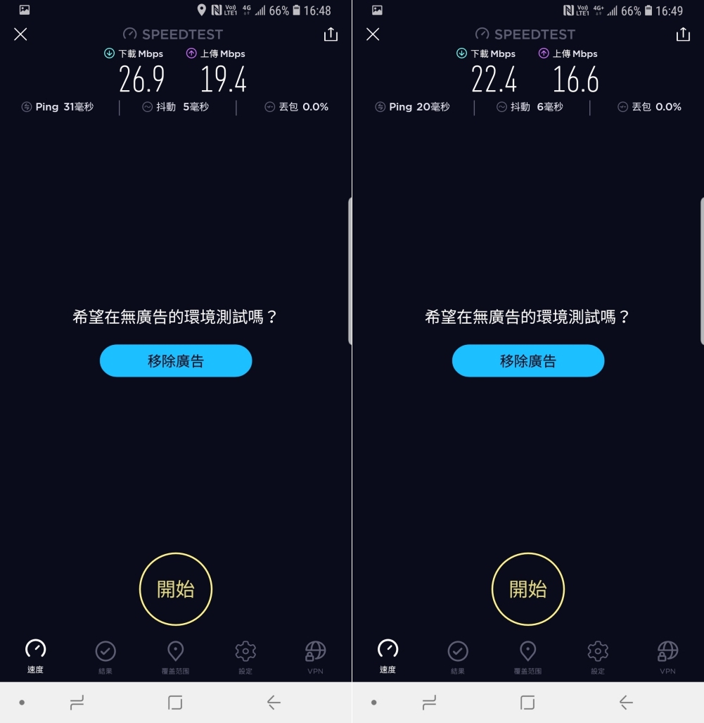 經過實測,下載平均速度有 20Mbps 以上,上傳則有 15Mbps 以上,而有一張速度特別慢的同樣是在地下停車場 B1 所測得的結果。