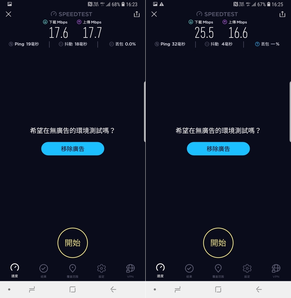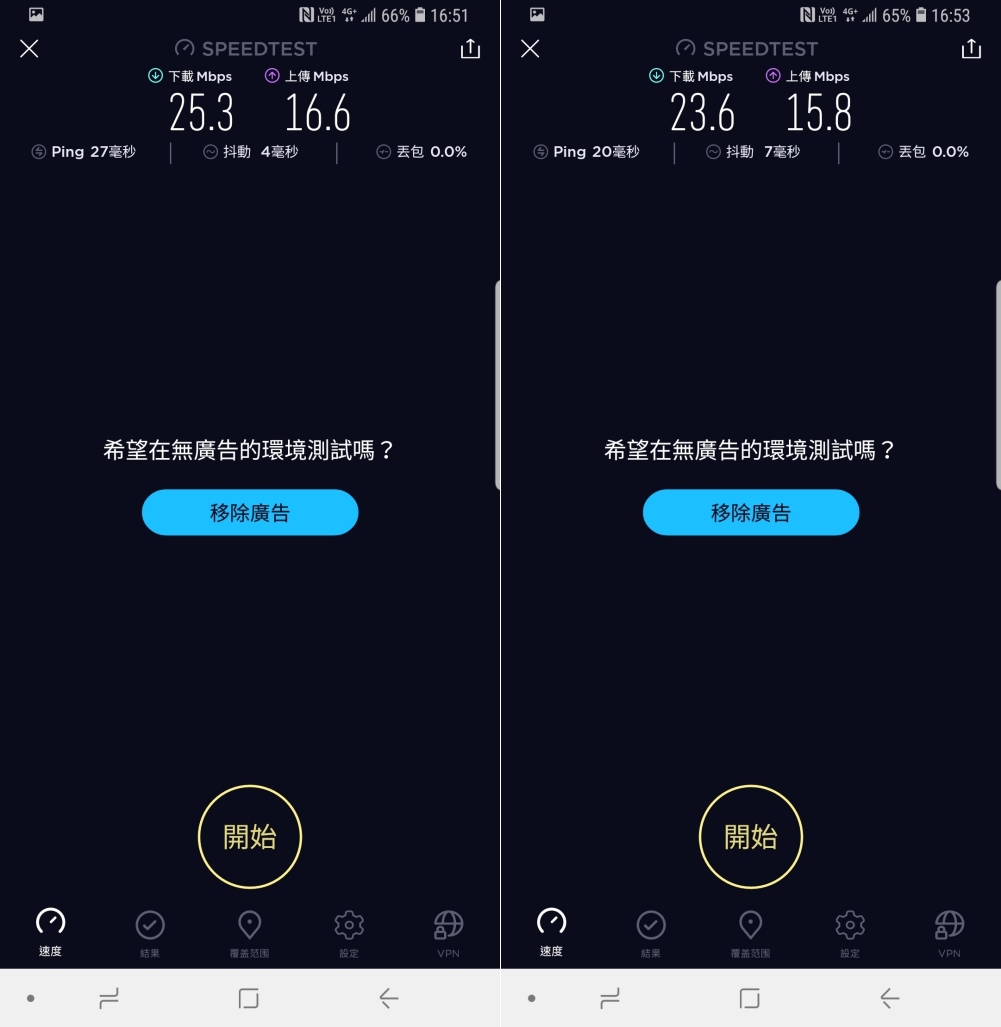 測得的速度下載維持在 25Mbps 左右,上傳則是保持在 15Mbps 以上。