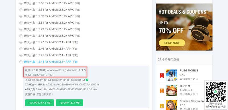 找個有歷史版本的來看,像這款養貓遊戲就有好幾個版本,可以找到兩年前、 2016 年的 APK 來下載。