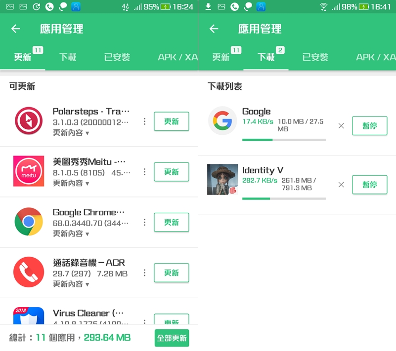 不過手機版的優點是還有管理功能,可以查看需要更新的應用、APK 下載列表和狀態,以及已安裝的 APK 等,這些從內建的檔案管理也能找到,就看大家覺得怎麼用比較方便了。