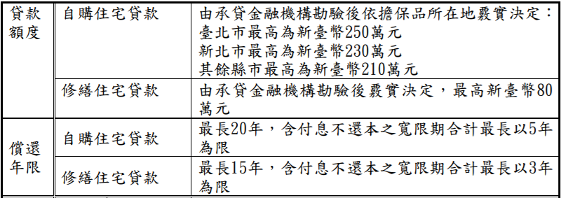 補貼項目:租金補貼、自購住宅貸款利息補貼、修繕住宅貸款利息補貼