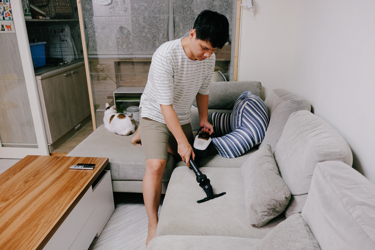 第一就是可以伸入沙發底下進行清潔,吸頭與機身基本上是可以近乎貼平地面來使用的,伸長後可以伸入最深 70 公分的沙發底下。