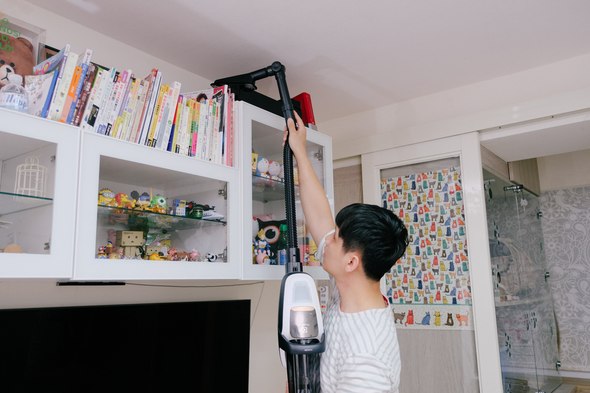 各項設計上其實運用在各種清掃環境真的蠻便利的,以女性使用來說,清掃地面真的相當的省力,可以說是讓你更優雅的打掃,而吸塵器機身本身在手持時其實算是有點重量,所以阿湯會認為這款吸塵器以長時間打掃來說,會更適合男性使用,當然家中的分工也可以是由女生來打掃地面的部份,而需要提著吸塵器到處走的部份就交給男生來處理,雖然提著其實重量並不是到女生會接受不了,只是當打掃時間長的話,對女生來說還是會有一點的吃力感,所以我們還是要當個居家好男人,一肩扛起各種家電(冰箱除外,會壓死人)來包辦大小事,加上老婆現在身懷湯包(他的小名),當然更是要扛起來啊!