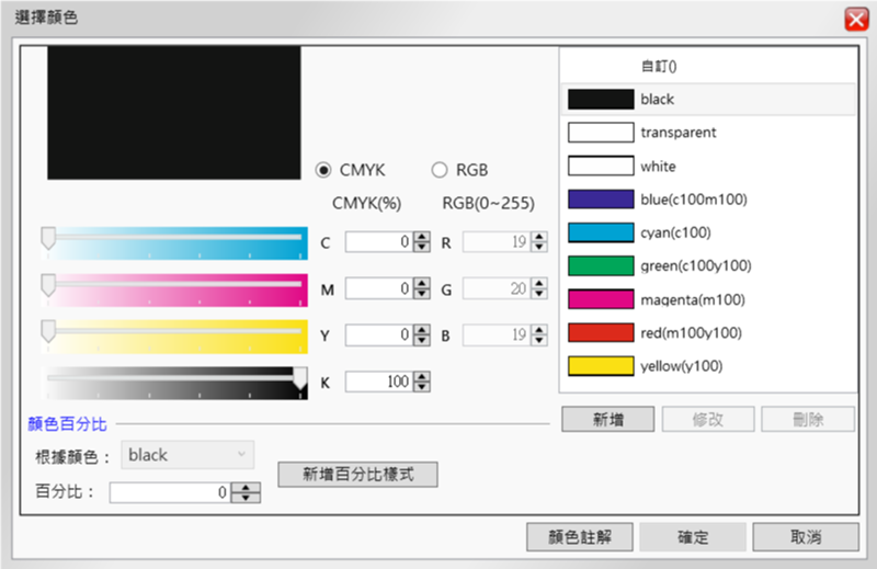 顏色也能點選或輸入色碼來搜尋,包括 CMYK 和 RGB 都沒有問題。