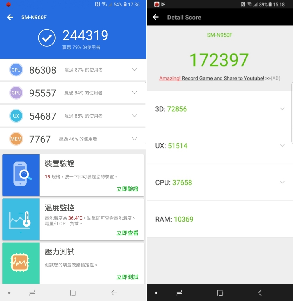 ▼ 左為 Note9、右為 Note8