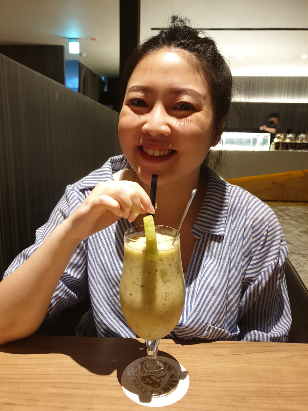 這張是透過智慧美顏模式所自拍的成果,美顏的相當自然,我那重到不行永遠不退的黑眼圈也能調的那麼好。