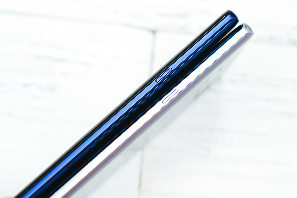 一開始阿湯在看 Galaxy Note9 時其實看不太出來側邊的差異,直到將口袋的 Galaxy Note8 拿出來才發現 Note9 的側邊多了切角的設計,讓側邊的視覺看起來會更窄一些,對於握感也有相當程度的提升。